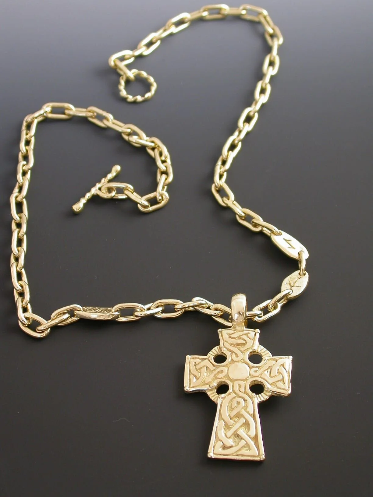 18k gold Cross with hand-made chain. Very heavy. sold.