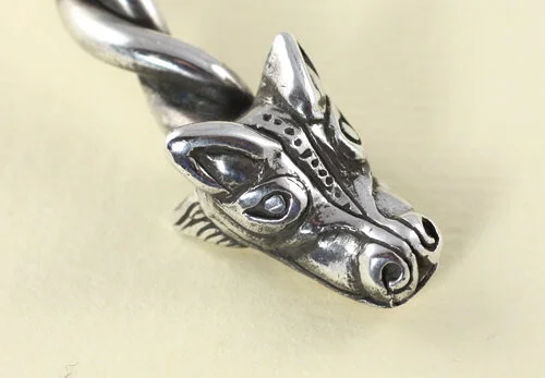 Amber Totem Beast earrings with silver and rose gold. I have made several variations of this earring.