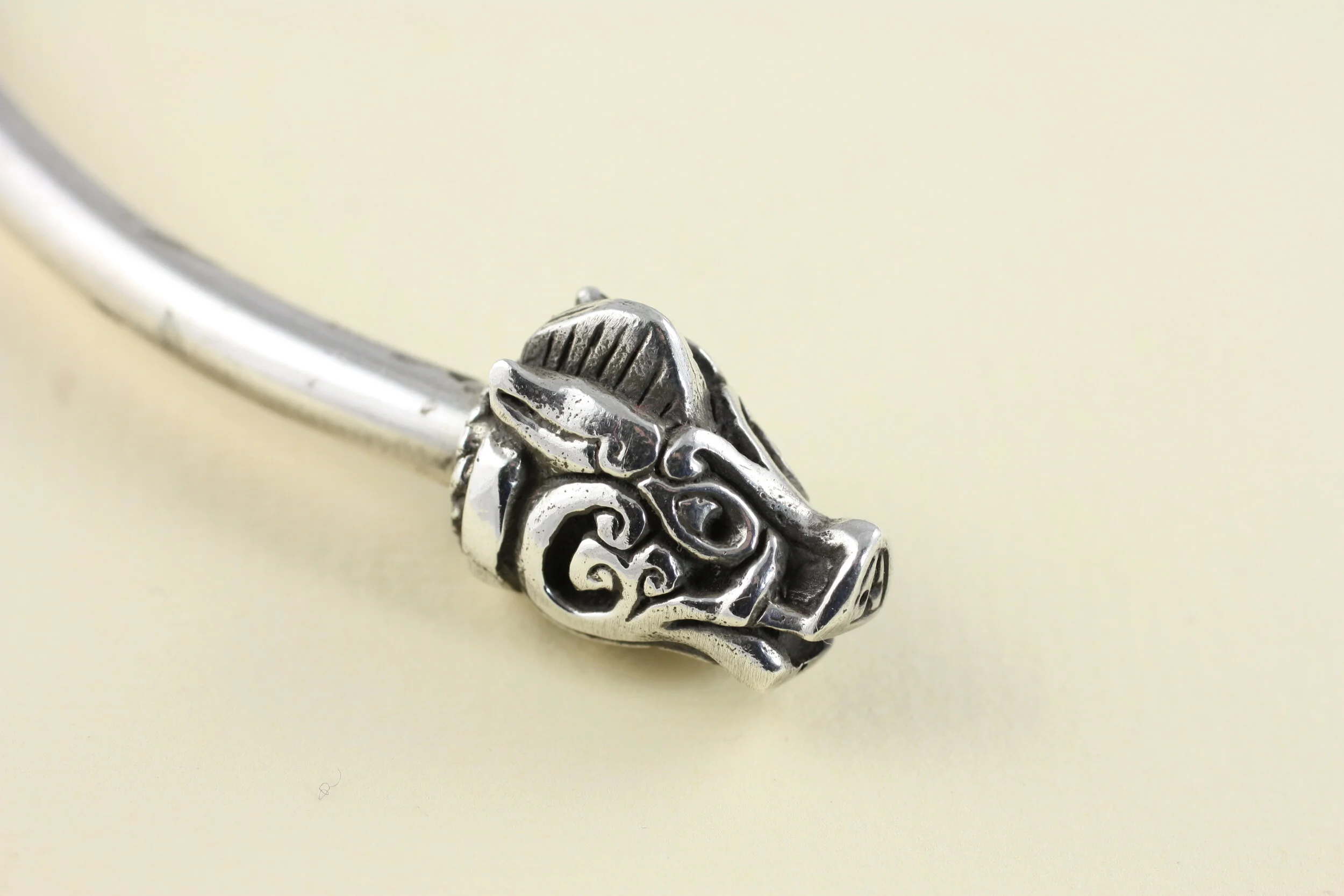 My very first penannular brooch or cloak pin. I have only made a few, some of which have gold embellishments. Heavy enough to counter-weight a cloak.