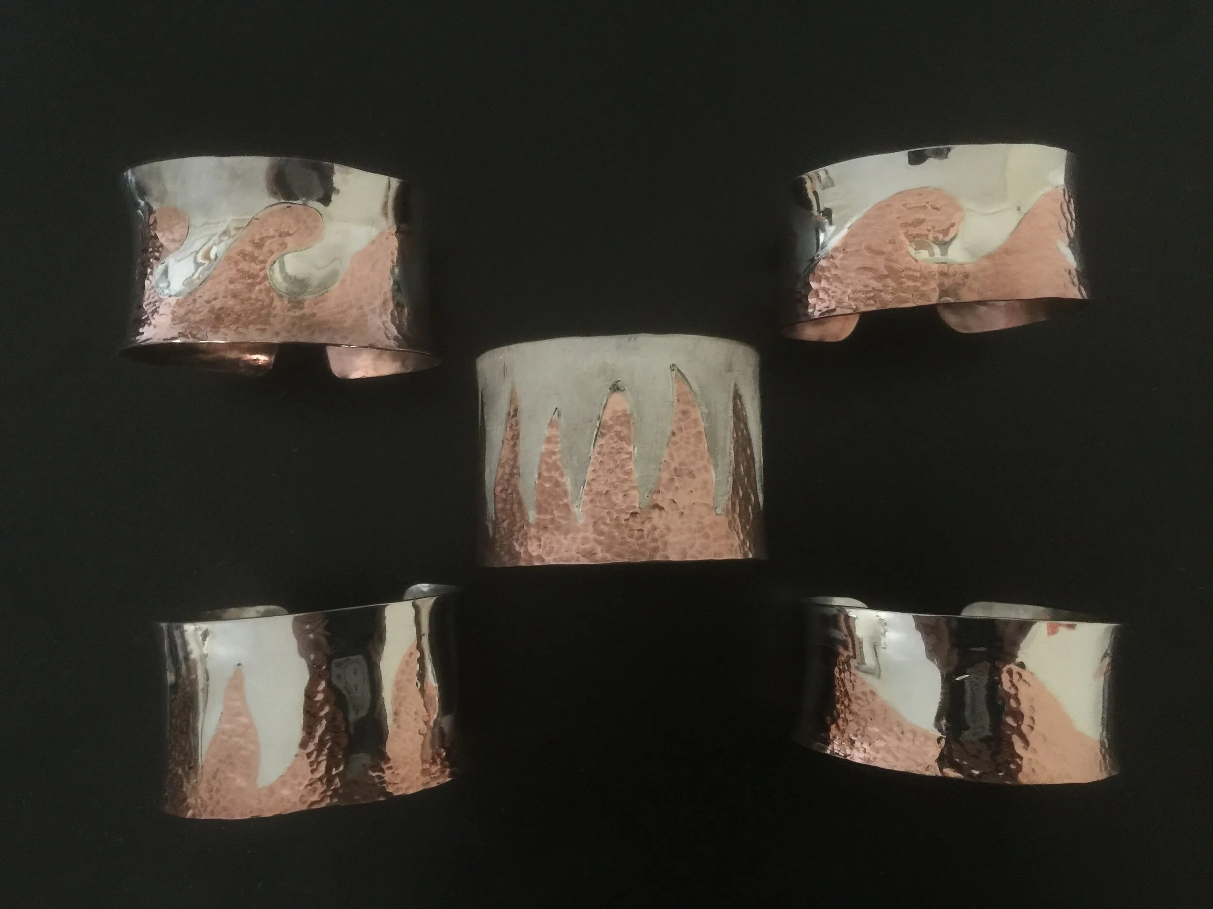 Hammered cuffs with copper and silver. Some of these were Katrina copper.